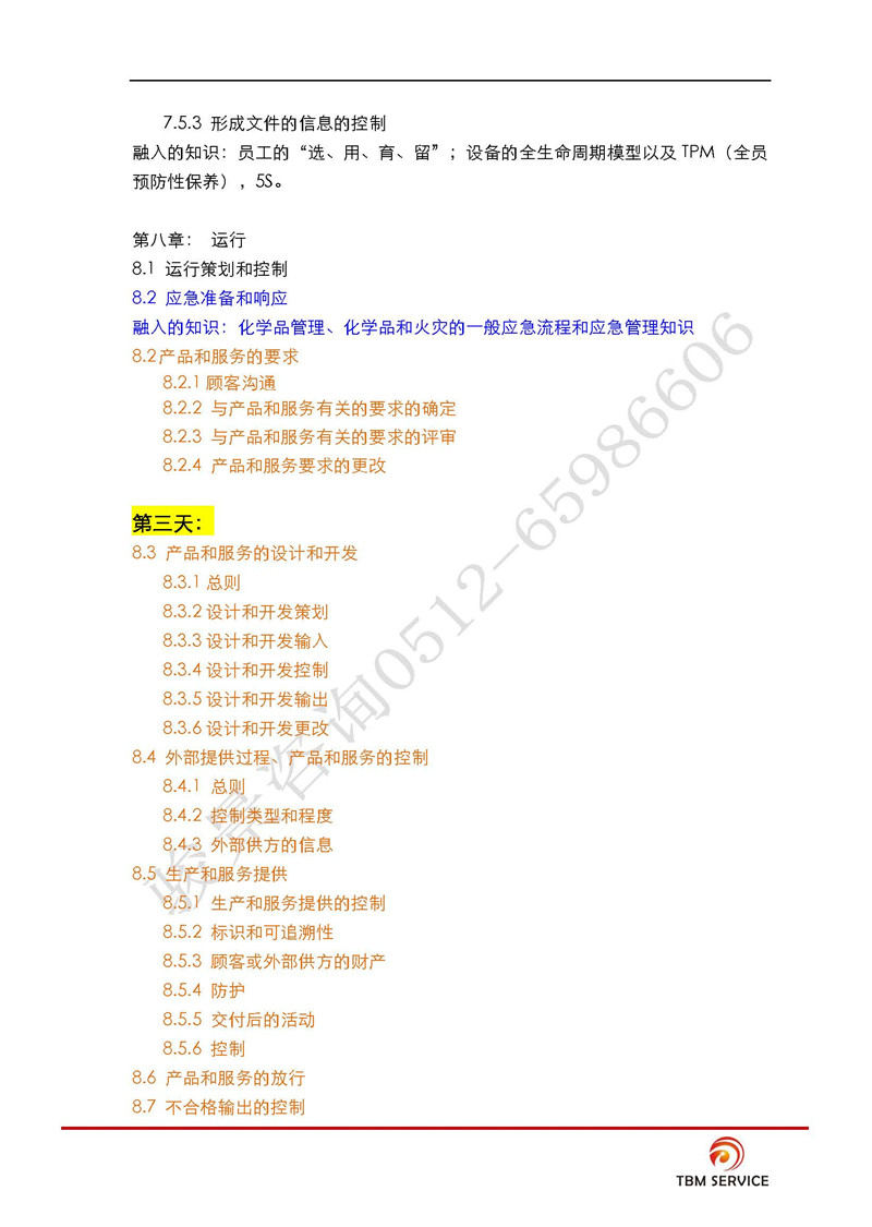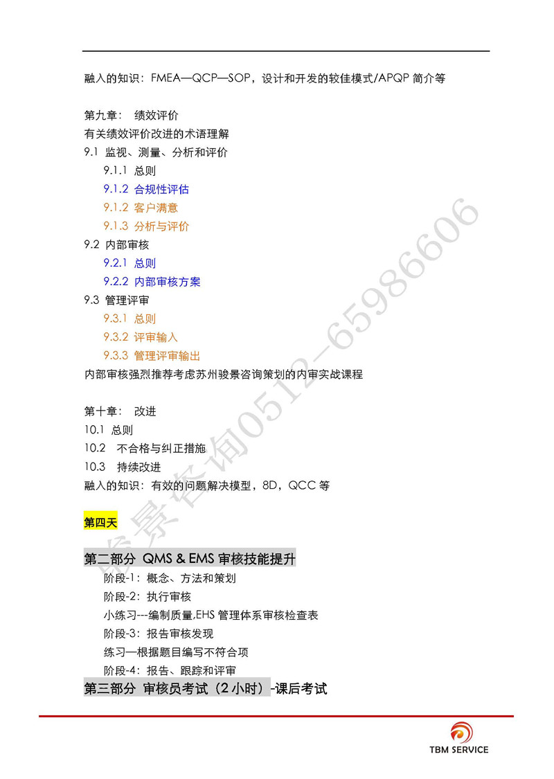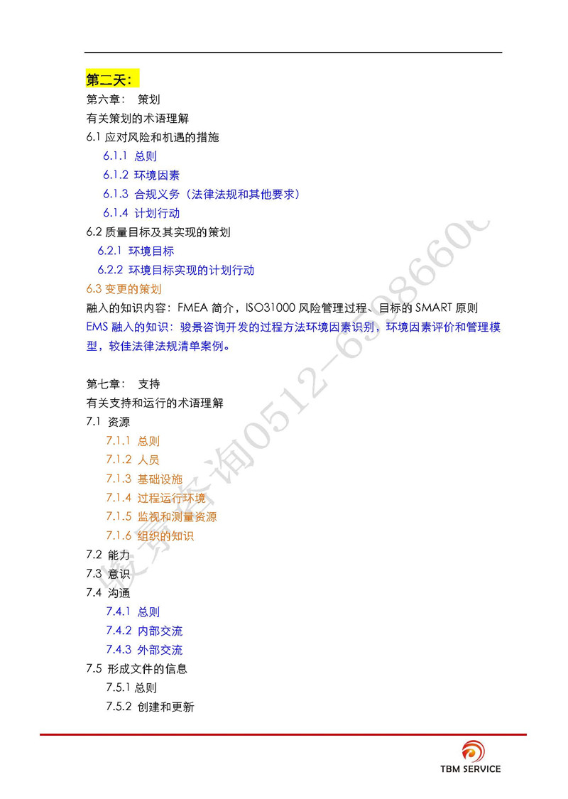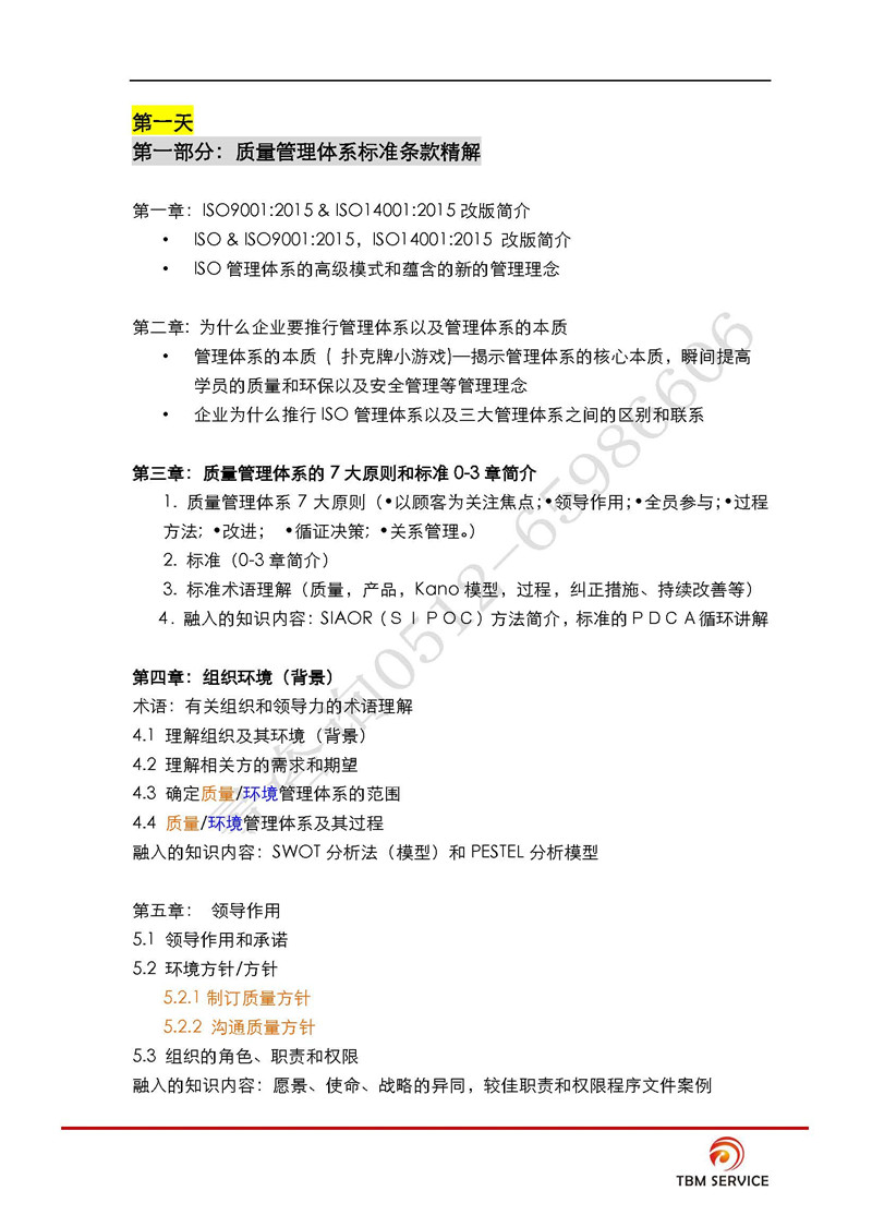備注:大綱中藍色字為環境管理體系專有條款,橘色字為質量管理體系專有條款。