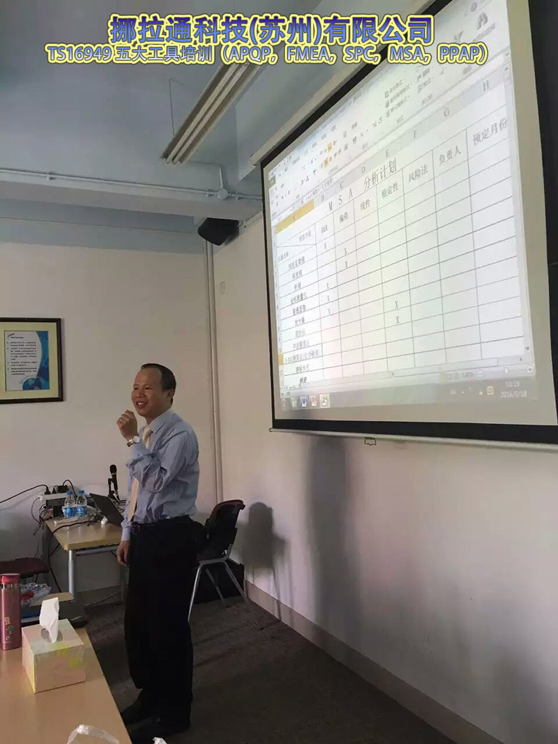 TS16949五大工具(APQP,FMEA,SPC,MSA,PPAP)培訓在挪拉通科技(蘇州)有限公司圓滿完成。