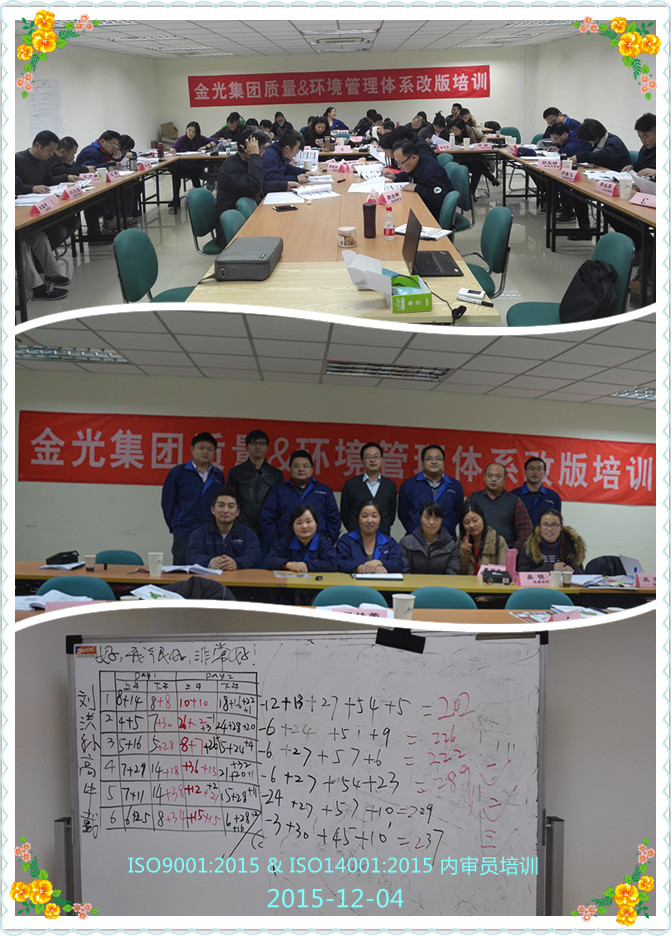金光集團(tuán)質(zhì)量&環(huán)境管理體系換版培訓(xùn)在12月1日-4日在昆山圓滿順利完成!