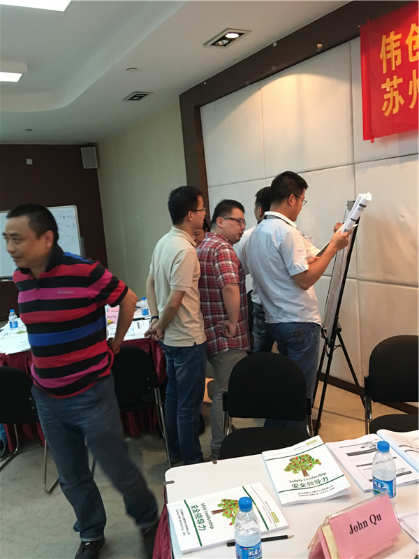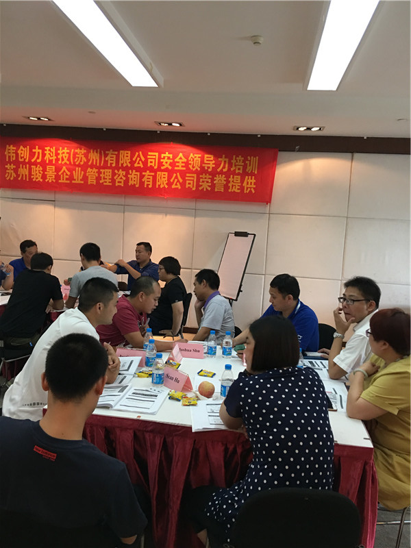 偉創力科技(蘇州)有限公司安全領導力培訓于2016年6月30-7月1日在蘇州工業園區獨墅湖高教區圓滿完成,安全領導力培訓課程以PDCA的邏輯去策劃,在本次培訓中,無論從策劃部分安全領導力概念的引入,管理體系的本質,還是領導者應該知道的幾個安全定律,以及在實施階段的ECPL上鎖掛牌,6S和目視化管理以及化學品管理,還是在監測階段的百錯圖以及標準化部分的事故的原因分析,到最后一個階段的應急準備和實戰演練,都精彩紛呈,學員積極參與,老師專業幽默以及互動的培訓方式都令大家收獲滿滿!培訓圓滿完成!