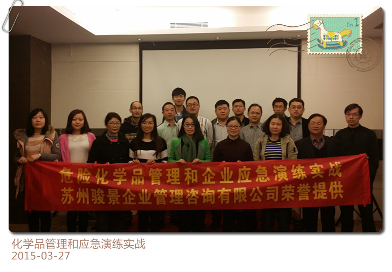 危險化學品管理和企業應急管理實戰圓滿完成,本次共有來自蘇州工業園區,南通和南京的9家世界著名企業的EHS經理和精英以及副總參加了本次培訓。