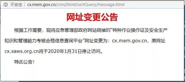 ■ 為嚴厲打擊造假販假,避免更多人上當受騙,應急管理部政府網站的特種作業操作證及安全生產知識和管理能力考核合格信息查詢平臺網址做出變更。