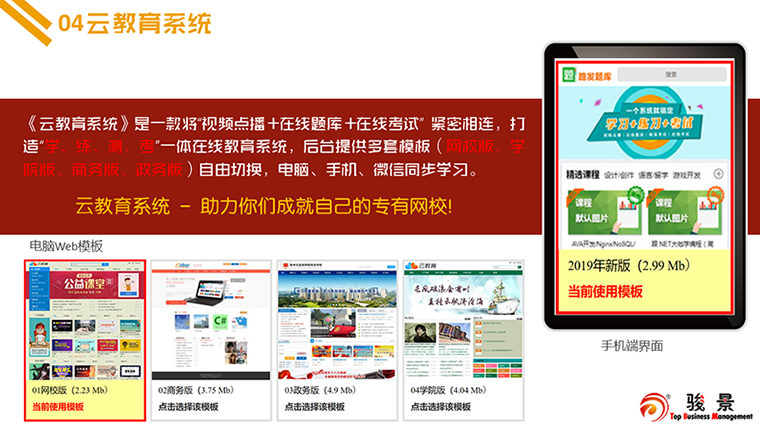 《云教育系統(tǒng)》由蘇州駿景企業(yè)管理咨詢有限公司(簡稱:駿景)聯(lián)合開發(fā)、設計的軟件,依法享有該軟件之所有權利。該平臺源碼開放,允許修改、轉(zhuǎn)發(fā)、復制、抄錄、發(fā)布,商業(yè)使用需要購買授權。