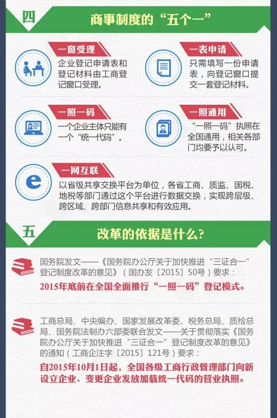 自2015年10月1日起,全國實(shí)施“三證合一、一照一碼”登記制度。屆時(shí),在工商總局申請?jiān)O(shè)立、變更企業(yè)將領(lǐng)取加載“統(tǒng)一社會信用代碼”的營業(yè)執(zhí)照。已領(lǐng)取組織機(jī)構(gòu)代碼證、稅務(wù)登記證的企業(yè)辦理變更登記時(shí),其原發(fā)的營業(yè)執(zhí)照、組織機(jī)構(gòu)代碼證、稅務(wù)登記證予以收繳。
