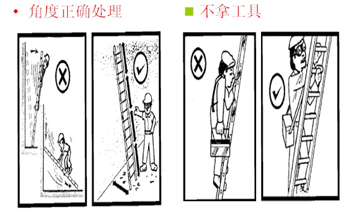 高處作業人員的身體條件要符合安全要求。如,不準患有高血壓、心臟病、貧血、癲癇病等不適高處作業的人員,從事高處作業;對疲勞過度、精神不振和思想情緒低落人員要停止高處作業;嚴禁酒后從事高處作業。
