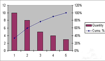 1906年意大利經(jīng)濟學家維弗雷多.帕累托用他的80/20法則為我們簡化了世界,或稱為帕累托原則。通常采用帕累托圖來表達。