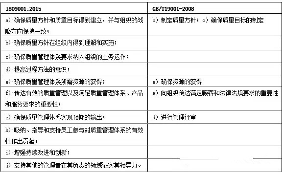 ISO9001:2015的5.1.1和GB/T19001-2008的5.1要求的比較