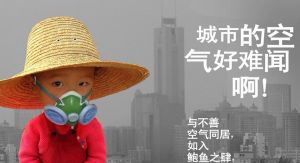 我們的空氣污染遠遠超出我們所知道的,就不說臭氧層 ,就說PM2.5,很多的城市都不合格!世界上污染最嚴重的城市有一半以上在中國。今年一月份的北京有一半時間都是重度污染!中國患肺癌死亡的人數已經上升到所有癌癥的首位,這和抽一手煙、二手煙 、汽車尾氣、室內裝修...
