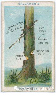 “決定好樹倒向哪一邊之后,如圖所示,交錯著向下和向內砍樹。待砍到一半深度的時候,轉到另一邊抬高幾英寸位置繼續(xù)砍。最后用繩索將樹拉倒。”