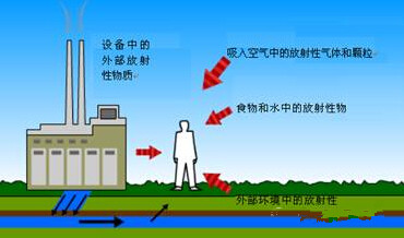 放射性物質進入人體內的途徑有三種,即放射性核素經由(1)食入、(2)吸入、(3)皮膚(完好的或傷口)進入體內,從而造成放射性核素的體內污染。下圖概括了放射性核素進入人體內的途徑及其在體內的代謝過程。
