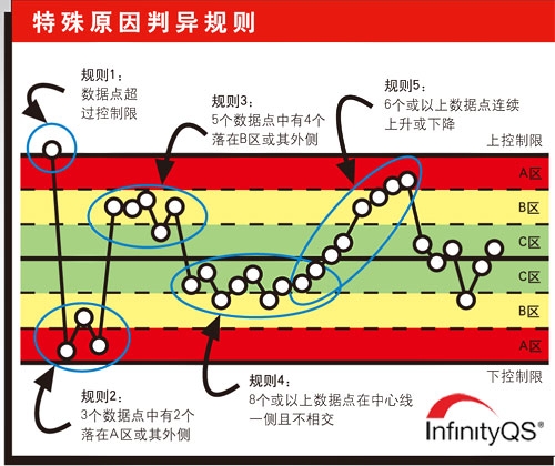 控制圖八大判異準則提練(口決、圖片對應項目):