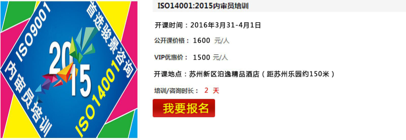 ISO14001:2015內審員公開課(3月31日-4月1日)