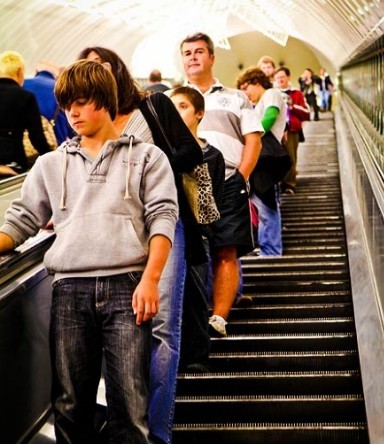“Able-bodied people standing on the downward escalator are in effect robbing the people behind them of time,” says Hamilton Nolan, who writes for online forum Gawker and regularly uses the New York subway. He speaks the mind of many walkers.