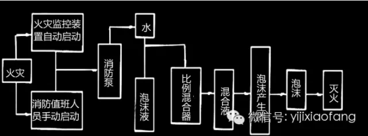 泡沫滅火系統主要由泡沫消防泵、泡沫液儲罐、泡沫比例混合器(裝置)、泡沫產生裝置、控制閥門及管道等組成。