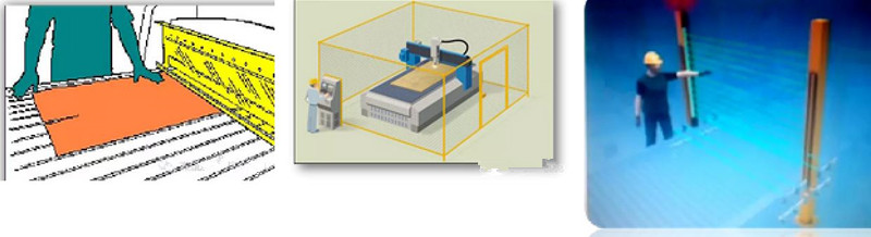 ②固定間距式和固定距離式:不完全封閉危險區,憑借其物理尺寸和離危險區的安全距離來防止或減少人員進入危險區的機會。