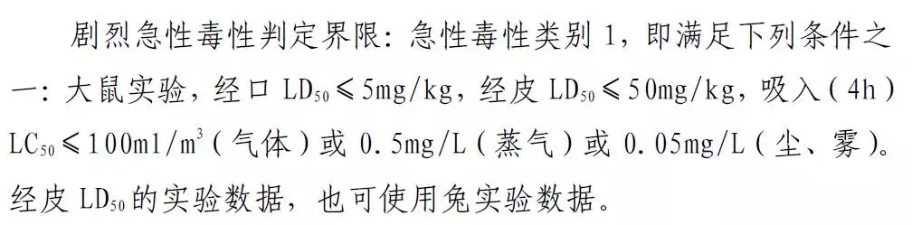 具有劇烈急性毒性危害的化學品,包括人工合成的化學品及其混合物和天然毒素,還包括具有急性毒性易造成公共安全危害的化學品。
