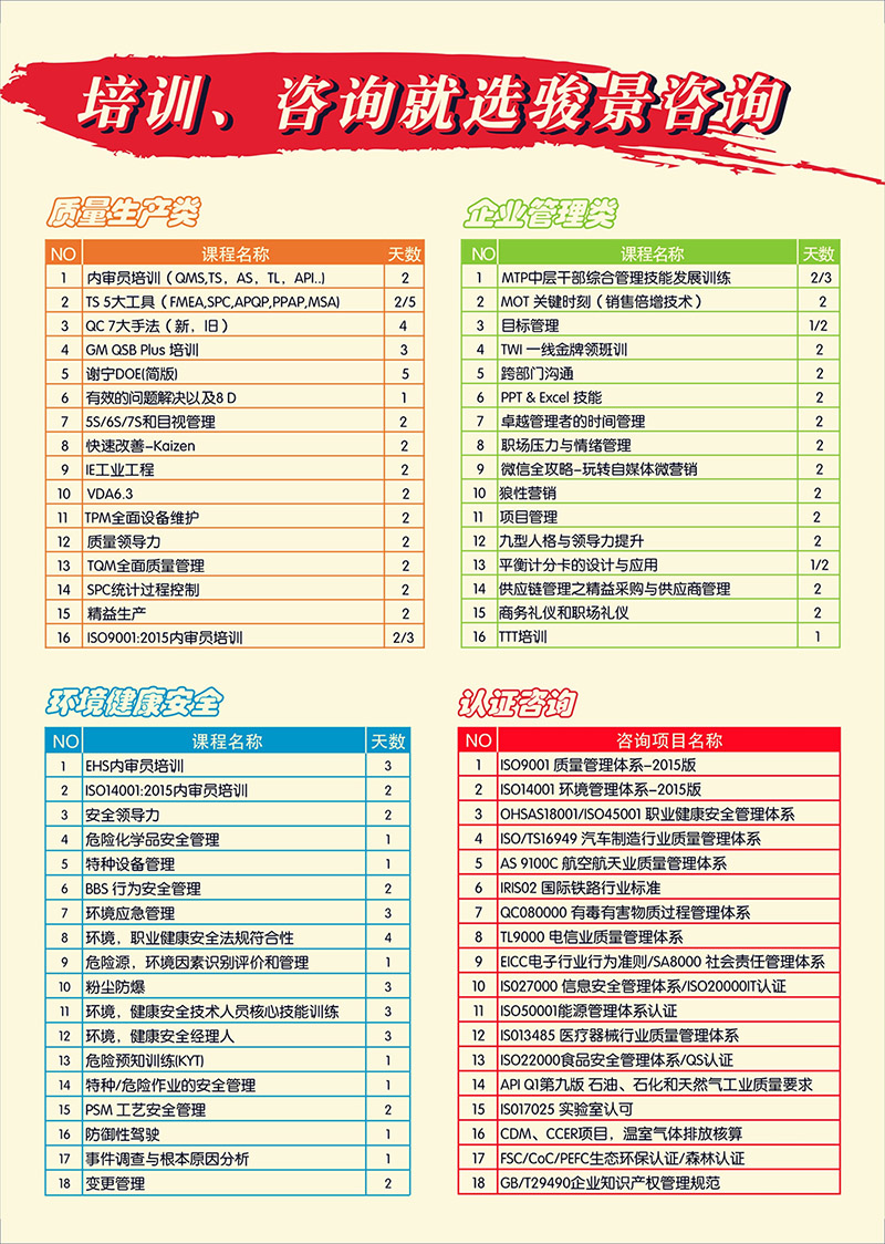 蘇州駿景企業(yè)管理咨詢2015年培訓(xùn)課程清單