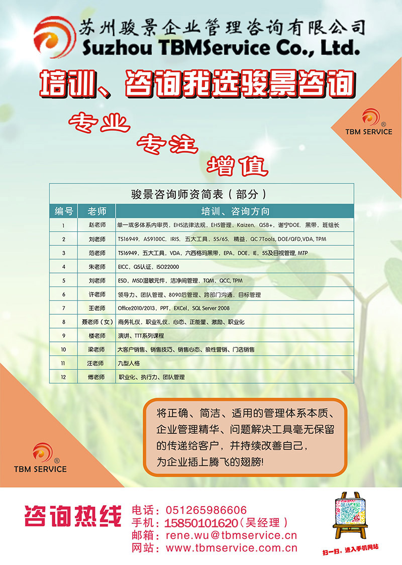 蘇州駿景咨詢2015年師資清單(部分)