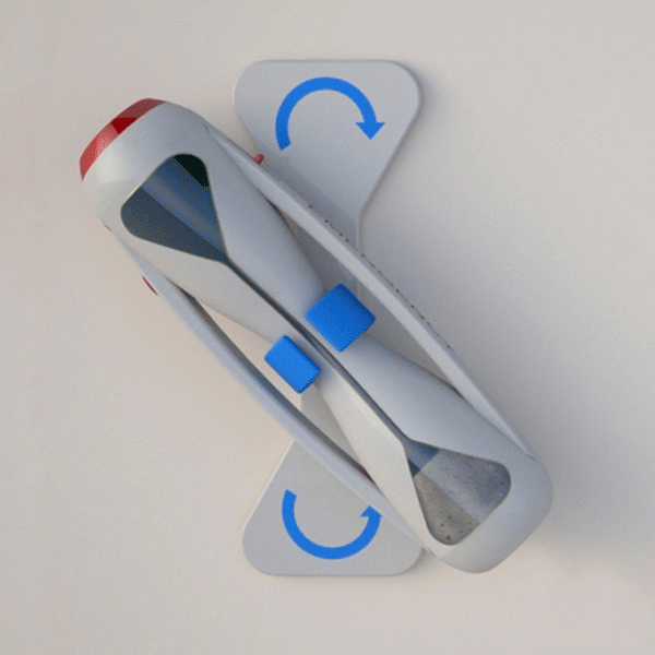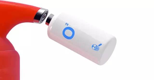這款設計是利用疊氮化鈉瞬間分解提供的氮氣設計出簡易使用并干凈的滅火器。設計概念是從人們忘記檢查壓力及保存期限為出發點,利用與汽車安全氣囊充氣方式一樣的疊氮化鈉為概念,設計出不再因為壓力流失的滅火器。使用時只要拉開保險擋片后可拉動拉環就可以實現滅火的功能,在使用完后還可以更換氣體罐,實現反復使用,使得更加環保。