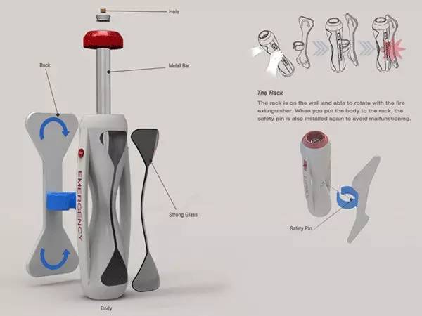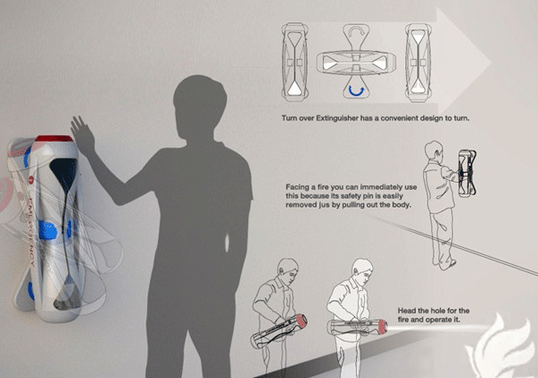 滅火器無論是在家庭還是在公共場所都是必不可少的物品,由于使用幾率不大,所以很少有人會注意到它。說實話,很多人見到這個東西都會緊張,怕操作錯誤,而且現在的滅火器看起來確實不那么易懂。最重要的是,打開滅火器的那幾秒鐘很可能意味著生與死。那么來看看設計師們是怎么來創新它的吧。