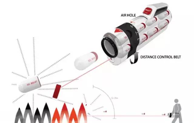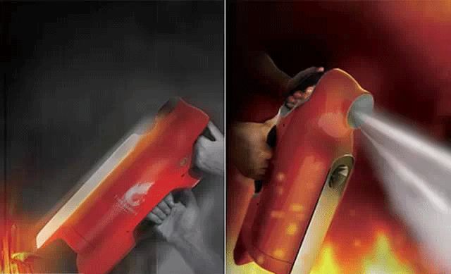 這款滅火器適用于超大型的火災,將滅火物質儲存在了類似于膠囊的小容器中,它借鑒了玩具槍的設計,而每個滅火的小容器都是“子彈”。一旦火災發生時,人們只需抓起“滅火槍”對準火場“開火”即可。這樣不僅有利于滅火物質的迅速散開,而且可以在更遠的距離進行滅火,因此安全系數更高。