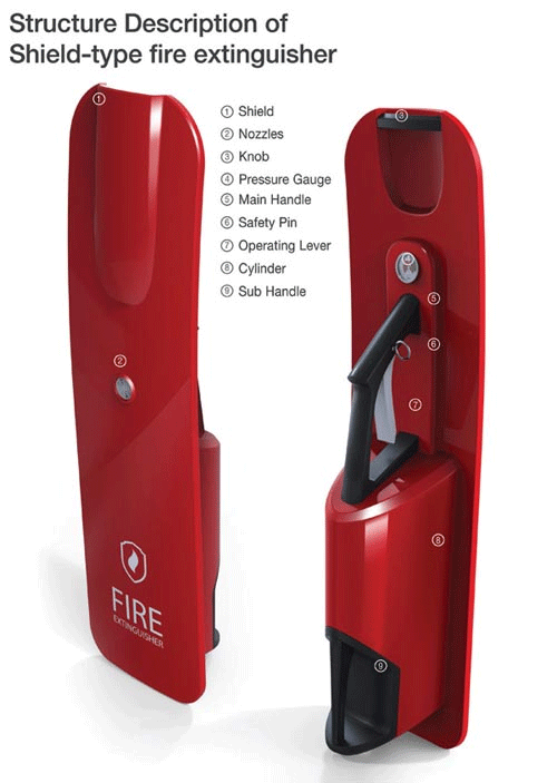 設計師JuneYoungKim和JiMinLee為我們帶來了一款全新的滅火器概念,這款產品相比于傳統的滅火器可謂十分“強悍”,它的盾牌式設計,可以為救火人員在應急滅火時提供一個安全的防護隔絕功能,滅火器瓶體的背嵌設計同時合理地平衡了滅火過程的雙手用力。